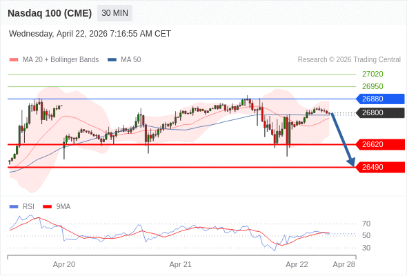 在 26880 之下,看跌,目标价位为 26620 ,然后为 26490 。