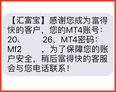 答:通过APP注册的账户与MT4是通用的,客户登录MT4需要输入登录密码,该密码在开户成功后,以短信形式发送至客户手机,如下图示。