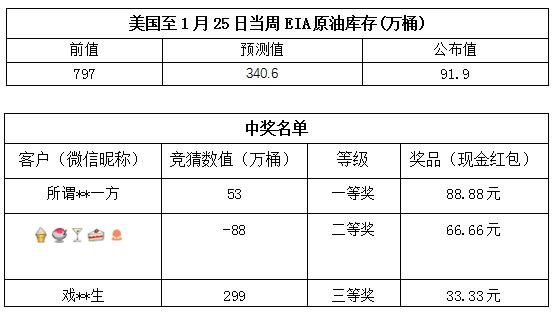 2019年1月第5次“EIA大竞猜”活动中奖公告